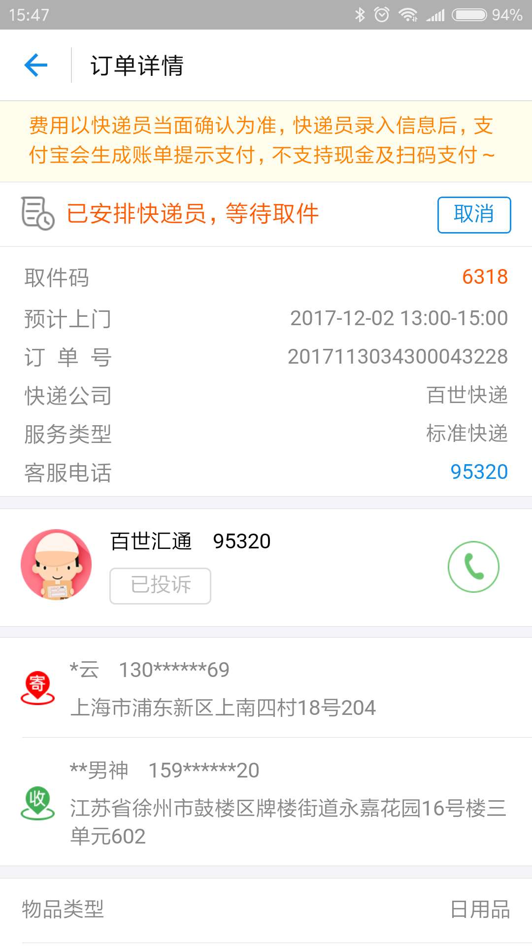 預(yù)約1點(diǎn)-3點(diǎn)上門取件,一直沒有來取件,聯(lián)系客服說延遲,讓我打站點(diǎn)電話,打了要么沒有人接聽要么就是通話中,再次聯(lián)系客服,說沒有找到我的訂單!