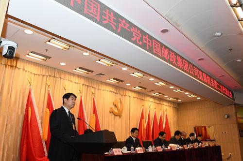 中國(guó)郵政集團(tuán)公司黨組書記、總經(jīng)理李國(guó)華發(fā)表重要講話。